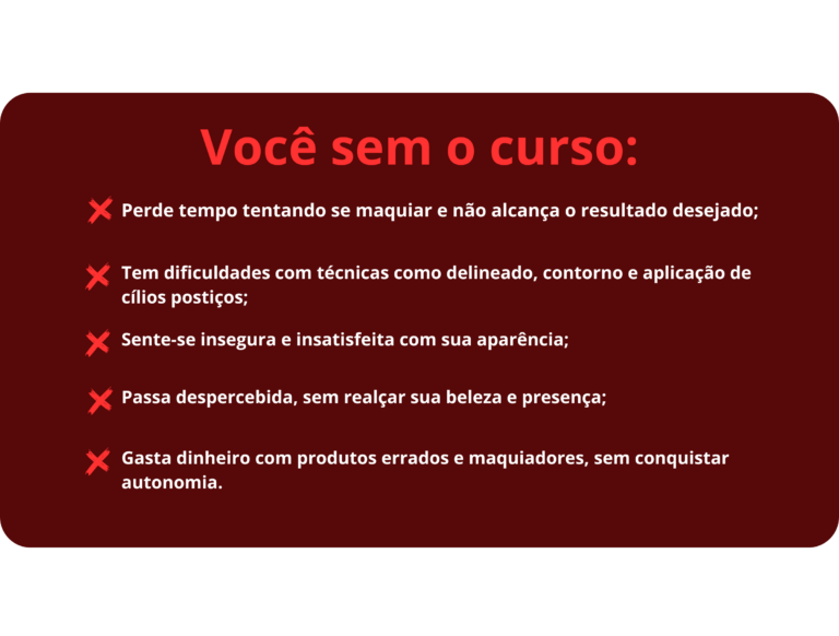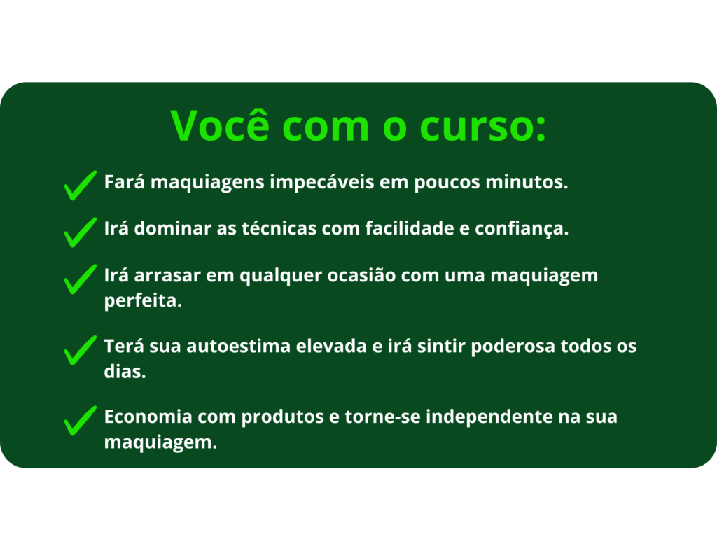 A decisão está em suas mãos: você vai escolher o caminho mais fácil, que te permite fazer maquiagens impecáveis em minutos, economizar tempo e dinheiro, e elevar sua confiança e autoestima todos os dias, ou vai continuar enfrentando dificuldades para se maquiar?